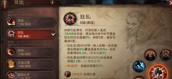 普攻狂乱主副手增幅,大家不要小看普攻,在旋风击冷却的时候普攻也是补伤害的重要手段
