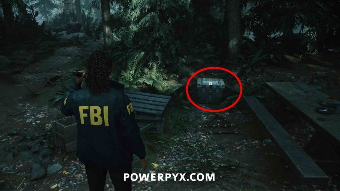 在谋杀现场正南方向有一辆拖车,拖车们正对面有个上锁的箱子(在拖车外面),与箱子互动,输入正确的三个符号(参考下图)。