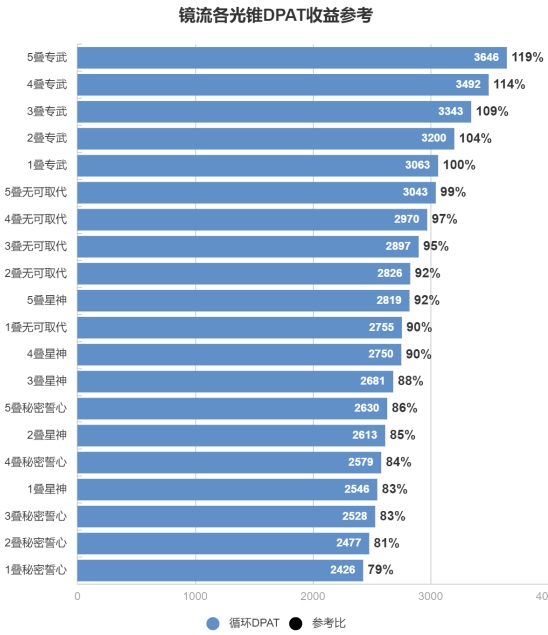 镜流作为一个输出角色,所以本次计算用镜流搭配停云的队伍进行固定变量,最终以单个循环的Dpat(每行动值伤害)来进行价值对比。