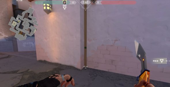 抬头将准星瞄准浅色墙漆跳投,这么看就一小条