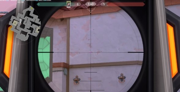 瞄点在窗口弧顶的中间部分,直接投出即可,左右两个窗口都可以用,但视野范围稍有不同。