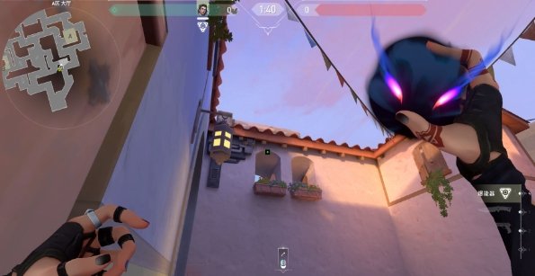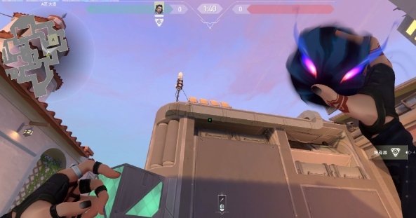 抬头将准星瞄准墙角与天空的缺口处前进跳投