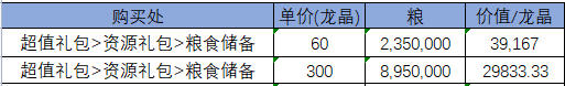 300龙晶, 第二次买 每一颗龙晶可以换2.9W的粮