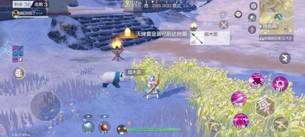 喂熊猫吃桃子、生肉等食物,有几率掉落装备或者细木箭