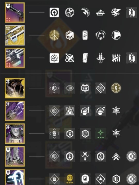 备注:武器优先爆破专家perk的武器(帮助手雷回转),其次火属性武器有辉耀炽热(打点燃)。由于手臂模组插了(手雷快速启动),臂环也是投弹手+面面俱到X2,没有空位去携带【特殊终结技】,这时双绿弹药经济吃紧,且本配装刚需爆破专家perk武器帮助手雷回转提升容错,所以选择了白弹无人幸存。