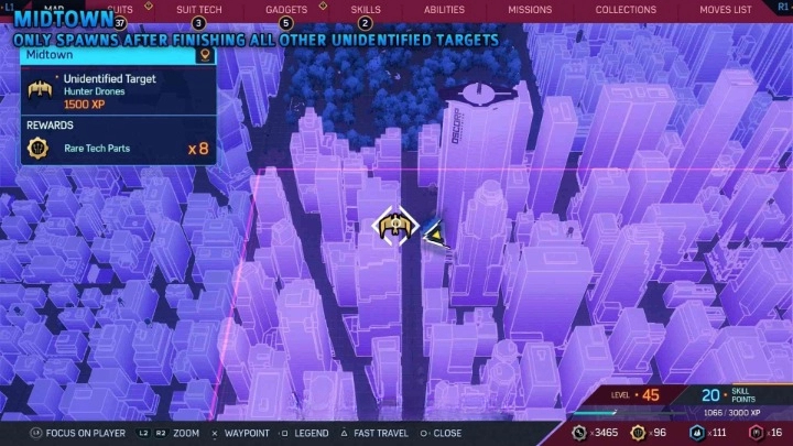 漫威蜘蛛侠2中总共有9个不明目标,每个区都有几个不明目标,玩家需要找到并完成所有不明目标任务即可以解锁“数据采集专员”奖杯。