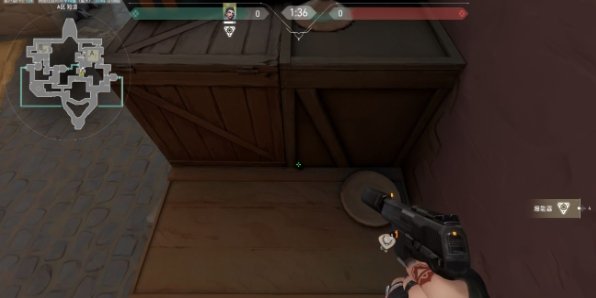 站在瞄准点紧靠箱子处