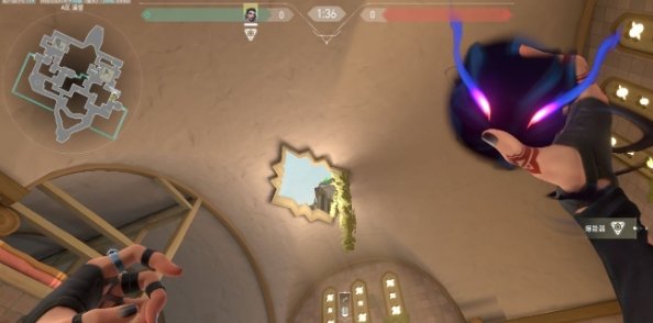瞄准棚顶洞内墙沿的中间处(参考下图),前进一步跳投,需要练一下。