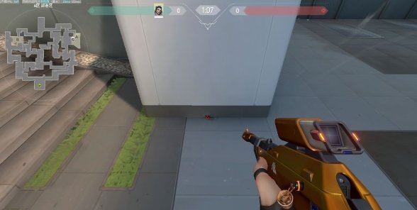 开局站在瞄准点处,可以参考上面的墙缝对齐