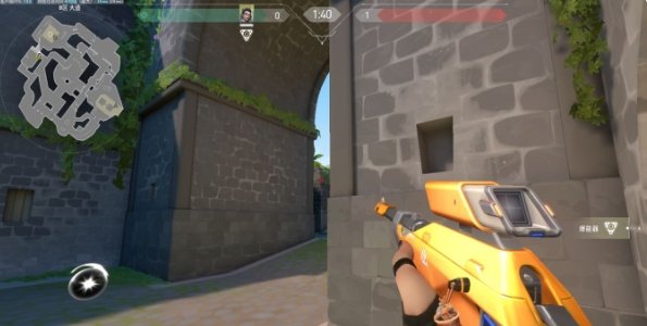 这个眼适用于攻守末段阶段,敌人进来下包后躲在塔后蹭枪,我们用这个眼找他位置或者让他找这个眼分散注意力,攻守两方都适用。