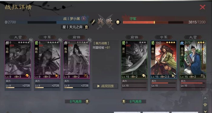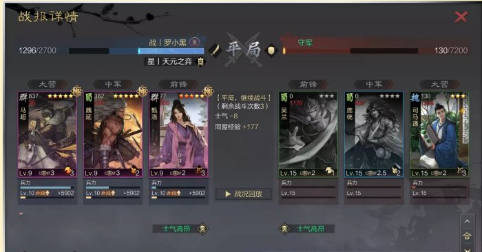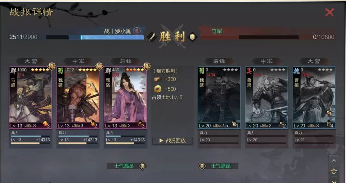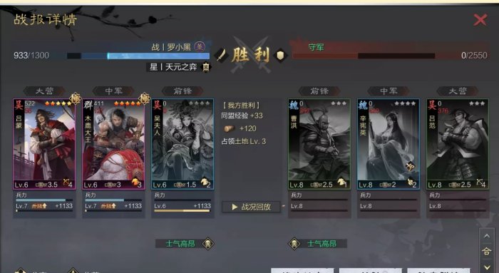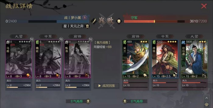 7.能够翻车后快速打下一轮,一个是小编荣誉买了资源包,另一个是合理使用预征兵,小编的预征兵一直只秒最后一个武将。