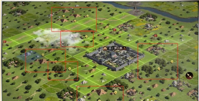 2.观察主城位置,可秒二级校场,然后上张辽荀彧马妹等骑兵去打6块1级地。打地的时候顺便为3级地铺好链接地。