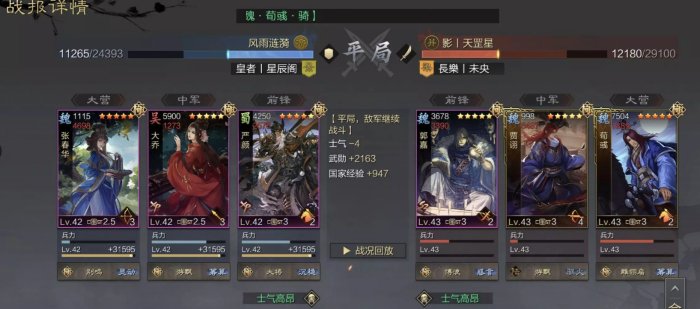 【九变】对于本队可以看做是一个群体增伤或怯战的战法,弥补了这队缺伤害和怕菜刀的缺点,现在袁绍物理刀少,有【九变】后只打法刀基本都能优势平。但它缺点还是明显,怕瓒刀和王异法刀,毕竟张春华很脆,还全部加了速,容易被爆头。