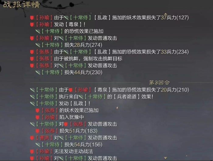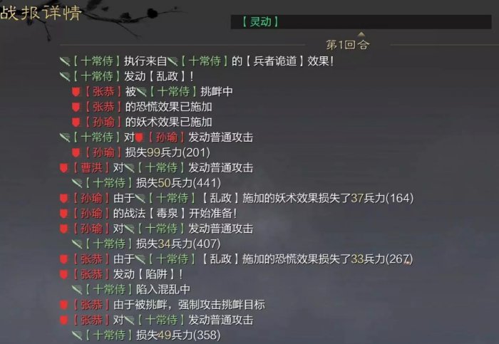 PS,十常侍的战法只算“一次主动战法”,他的战法效果虽然多,并不能多次触发兵者,这些都只是“战法效果”而已