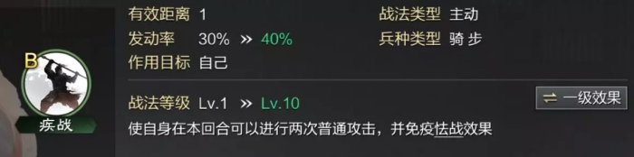 这些追击流武将,如果带了【兵者】再带个【疾战】(或【先驱】) ,只要成功发动了【疾战】,就是“试图发动2次追击战法”。