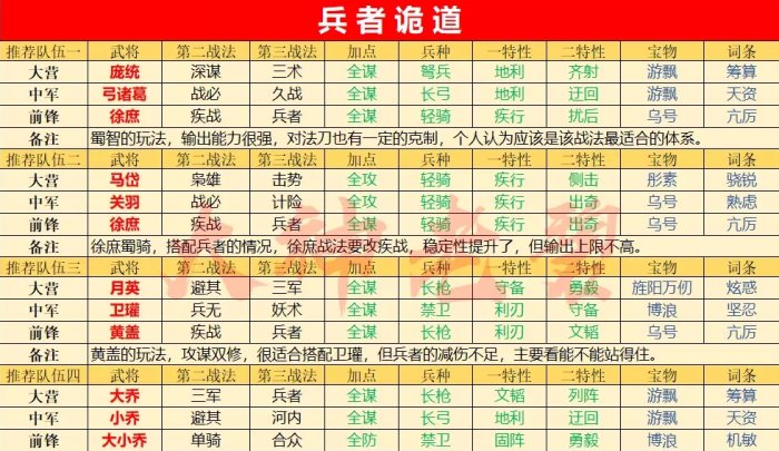 综上,【兵者】适配性太低,除了黑科技或者缺战法,一般很难被用上。