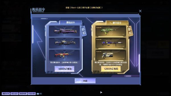 战令分为基础版本(5800NZ点)和豪华版本(12800NZ点),基础版和豪华版只有一点区别,区别就是豪华版可以升到30级。购买基础版的看官老爷们只能从一级开始升级,而购买了豪华版的看官老爷们只需要再升级60级就可以领取战令所有的奖励了。商城道具页面可以购买折扣版本的战令套餐,基础本只需要花费3800NZ点,豪华版花费10800NZ点,与非折扣版本相比只是缺少了几张战令积分卡而已。所以对于经常可以玩游戏的看官老爷们皮皮推荐3800NZ点的基础款,而不常玩游戏又想要战令皮肤的看官老爷们皮皮推荐10800NZ点的豪华版。