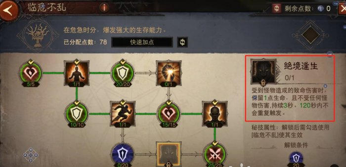 坚韧不屈可以让我们更好的减伤增加容错率,绝境逢生这个技能会在我们关键时候救命