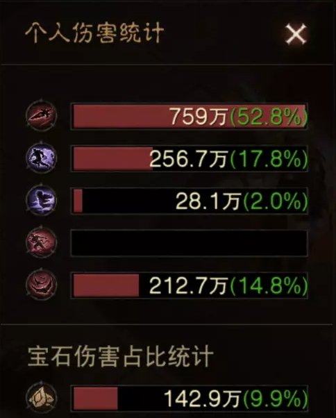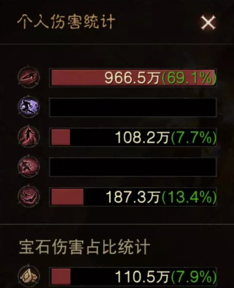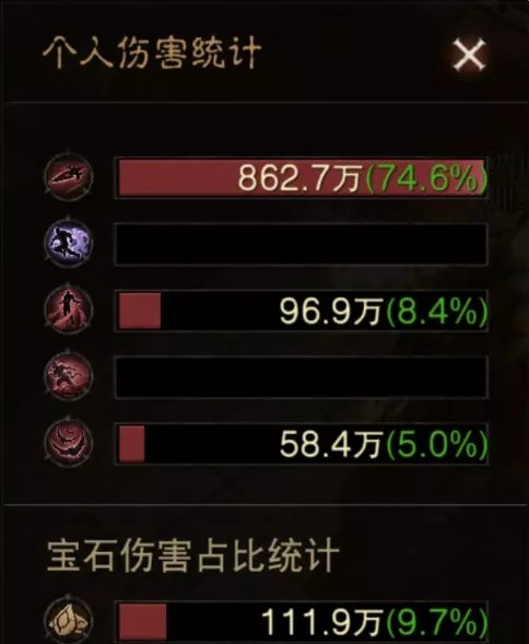 蝠群代言人很明显伤害下降了不少,平均秒伤在100W~110W左右,因为副手加普攻的攻速,所以护肩的收益肯定要高于蝠群代言人的,如果没有攻速收益这两个护肩估计伤害差不多。