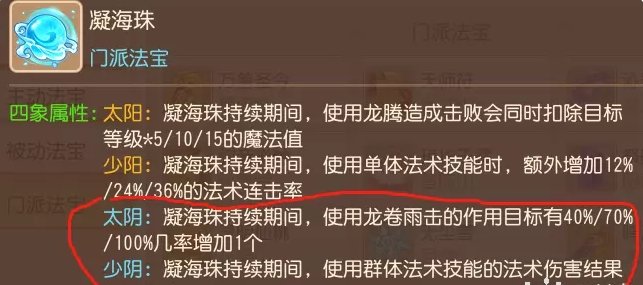 其实很多输出的门派法宝四象和两仪多少有点相悖,比如龙宫加强群体法伤能力的两仪却是阴属性