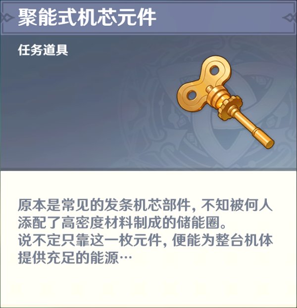 「聚能式机芯元件」总共有7个,其中任务可以获得2个,探索可以获得5个