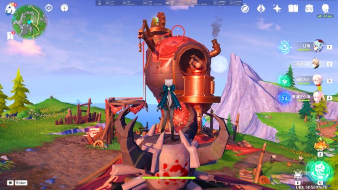 收集完3个「正齿轮」后,我们回到超大型丘丘机器人这里,将「正齿轮」组装上去