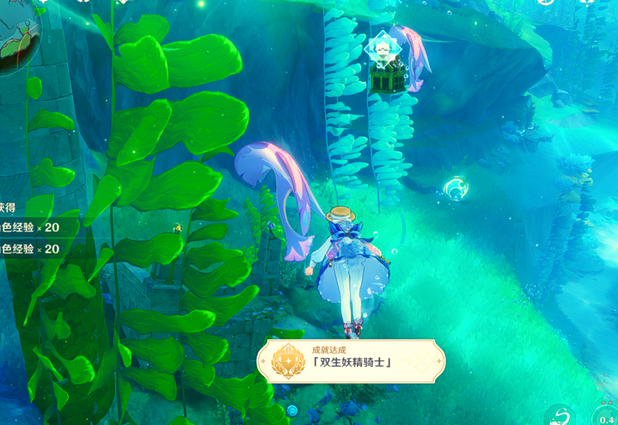 位于天赋本秘境的左边,打之前记得先随便拿一个海洋生物的攻击能力,我们可以先放水,因为被双生妖精打死了会有一个成就「二河白道之卷」。