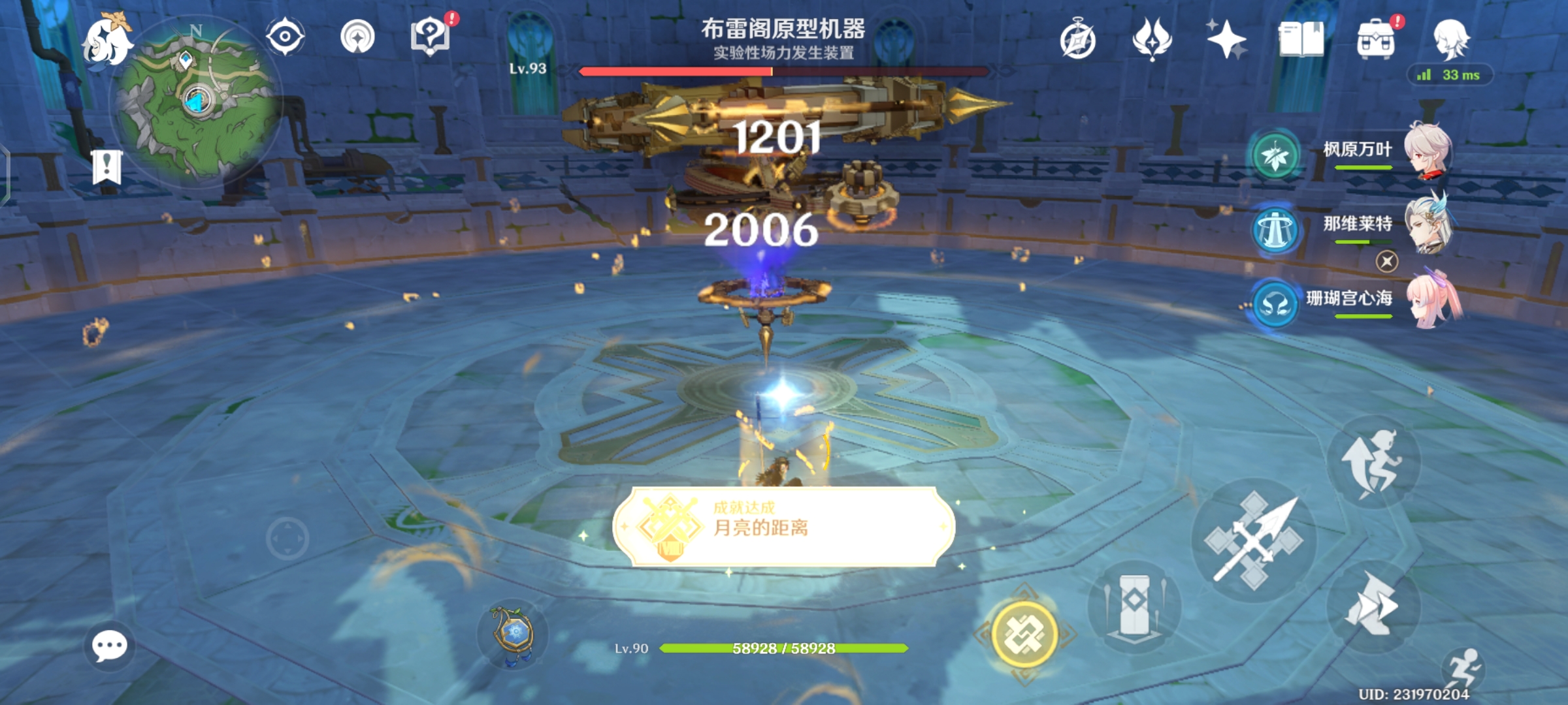 此时,我们使用任意角色跳起,并发动下落攻击。在本轮重力衰减结束前,累积使用11次下落攻击成功命中「实验性场力发生装置」即可解锁成就「月亮的距离」