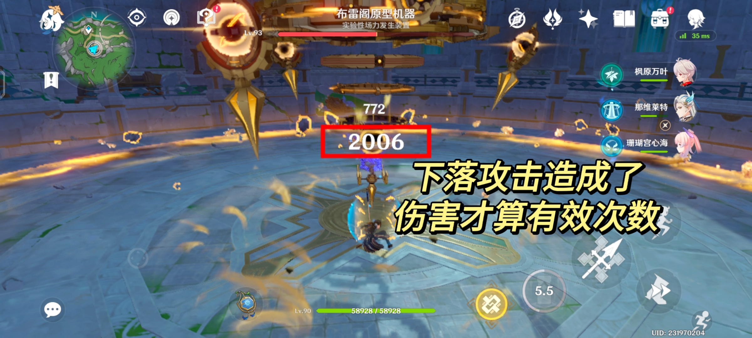 注:①. 尽量不要离boss太远,下落攻击必须命中boss(有伤害产生)才算有效次数。