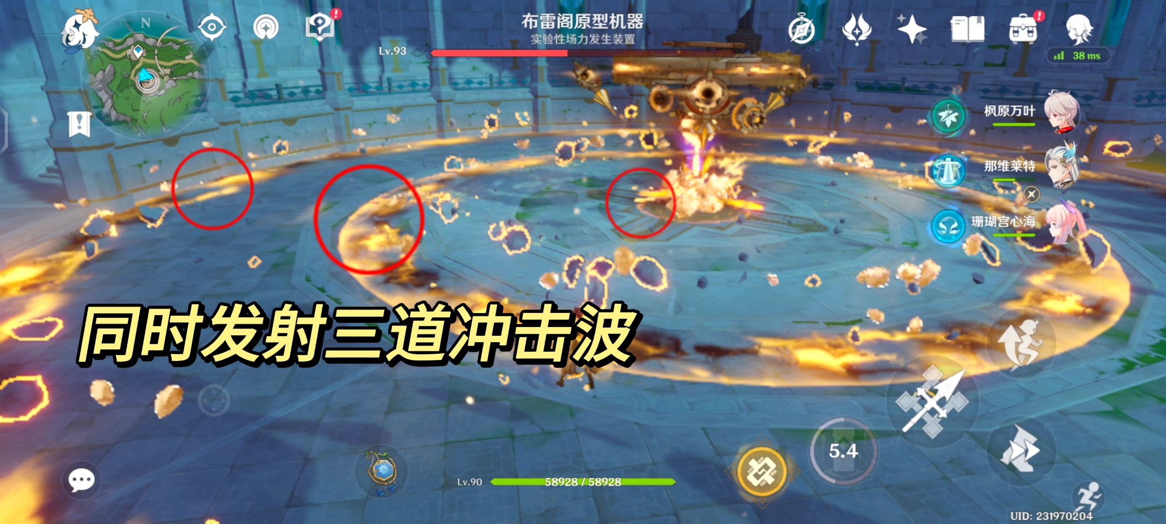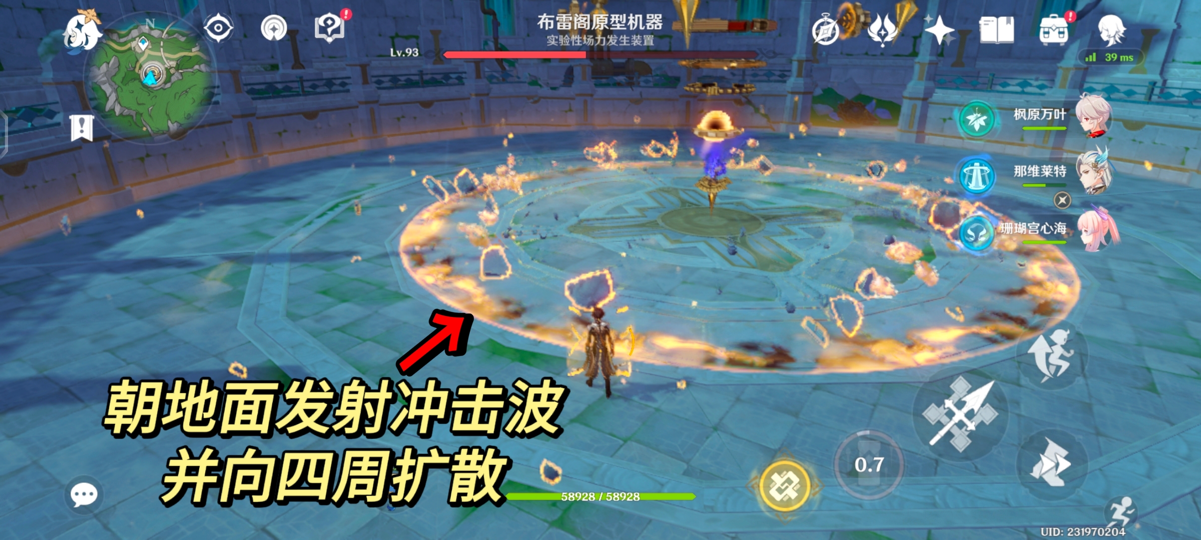 在与大世界boss「实验性场力发生装置」的战斗的过程中,它会释放名为「引力涟漪」的技能。boss会出现明显的前摇蓄力,随后朝地面发射冲击波并向四周扩散。
