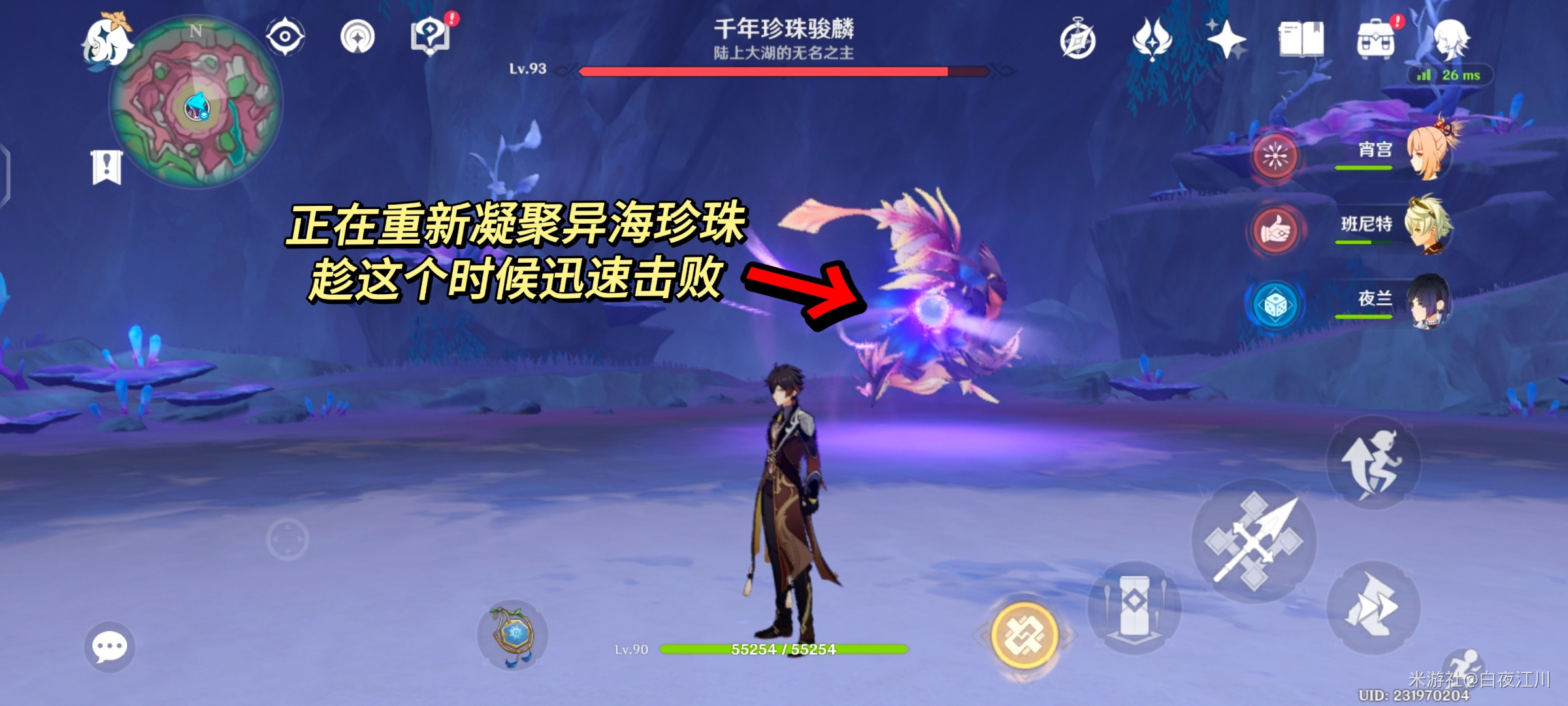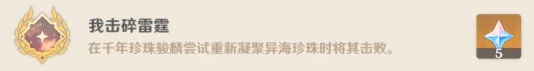 还是挑战大世界boss「千年珍珠骏麟」,这次我们直接清空它身上的紫色雷元素盾条(异海珍珠能量条)。