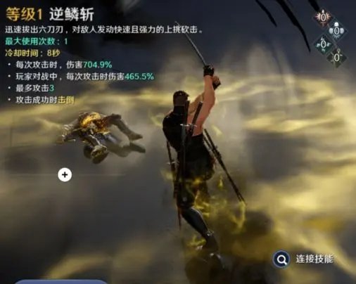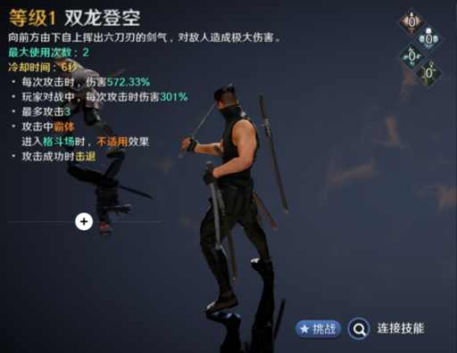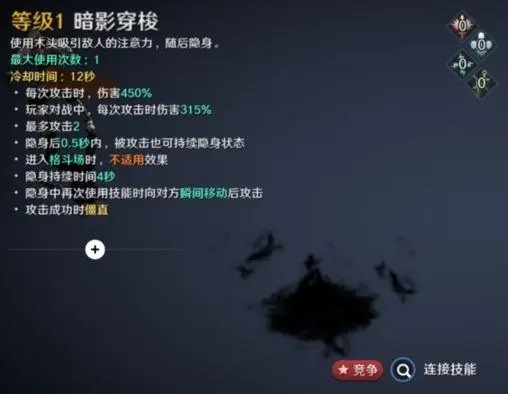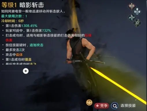他拥有多段攻击技能,连技伤害相当惊人。可短位移闪现攻击,亦可中距离位移砍击,还有忍者独有的隐身攻击技能,只要敌人稍有不慎,六刀就会瞬间深入造成致命的伤害。