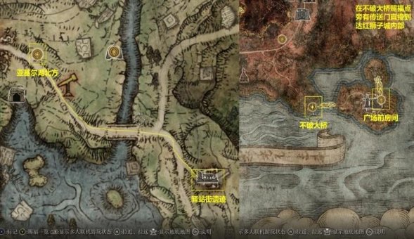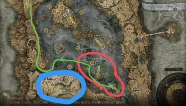 按照图片赐福边跑图边开,到了不破大桥先不急着点因为你过来的途中狼狗会和士兵打起来是个刷钱的好办法。打完之后点赐福上传送。然后到了盖利德红狮子城,参加战斗庆典,开启拉塔恩BOSS战。乘升降梯下去再点传送,然后点地上的金色符号点召唤(建议你骑马点)期间一定一定要小心拉塔恩的大弓,后面会出现慧星砸地小心小心!打败拉塔恩之后和赐福点旁的布莱泽对话,他会提到有星星坠落!