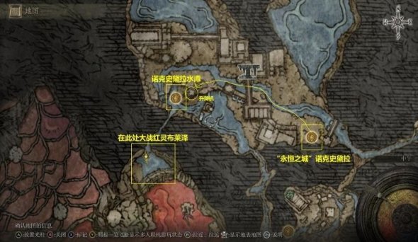 现在往宁姆格福海德要塞北边(红色圆圈),原来是空地,让拉塔恩被砸出个大坑。然后一路向下来到永恒之城诺克隆恩