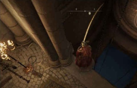 从这里跳上井口的边边,进入对面窗口
