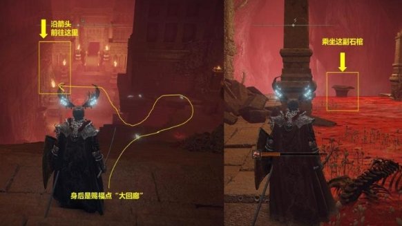 在打败红灵布莱泽的地方继续向前,来到场景腐败湖。通过踩踏湖中石碑前的机关,会浮起可以落脚的平台。穿过腐败湖,找到赐福点大回廊。从赐福点出发,向前探索,在一群腐败眷侣膜拜的建筑前左拐,在尽头可以找到一副石棺。乘坐石棺来到另一处地点,开启“黑暗弃子”艾丝缇BOSS战(小心实在打不过咱可以摇人)