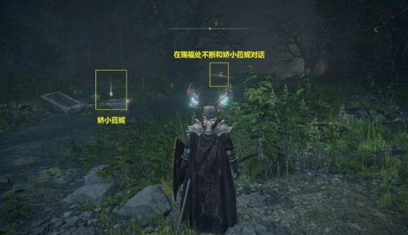 传到了以后,在正前方的石棺上,可以捡到关键道具“娇小菈妮”。在前方的赐福处休息时,会出现和玩偶对话的选项。一开始对话是省略号,不断对话至菈妮复读。老婆让你去击败诺克史黛拉深处的红灵。