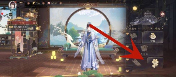 1、玩家首先进入游戏,点击图中标记的左上角位置。