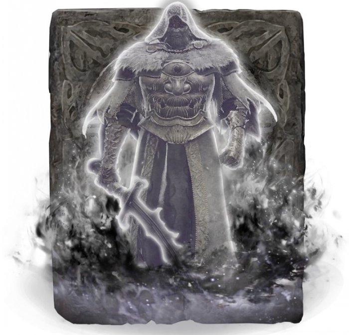 106耗蓝,+10情况下生命值7317,普通/斩击/打击/突刺/魔力/火/雷/圣承伤倍率0.9/0.65/0.9/1.0/0.8/0.6/1.0/0.8(抗斩击与火,耐魔力与圣),红眼骨灰,会使用战吼(也会回应玩家的战吼),远程压制能力很强,但是近战能力乏善可陈,失衡值65,基础精力120/盾牌抵抗力70,架盾物理/魔力/火/雷/圣抵抗90%/70%/80%/50%/70%,英灵地下墓地击败boss获得