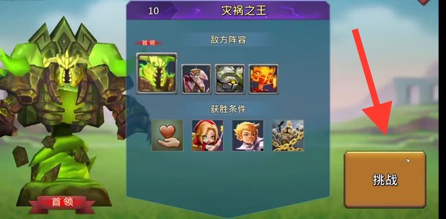 2.我们可以看到敌方的阵容还有获得条件,然后我们再点击挑战。