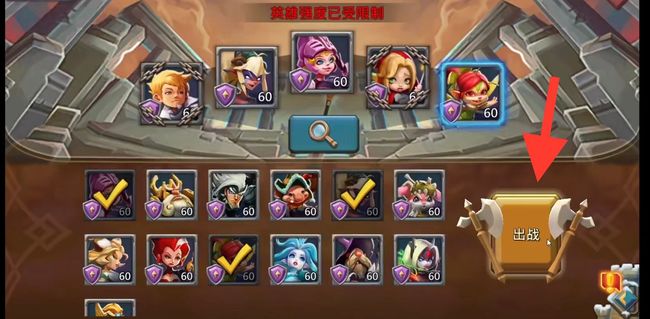 3.我们可以根据敌方阵容来搭配自己的阵容,阵容搭配好之后我们点击出战。