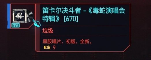 可以看到,卖的唱片有白蓝橙3个品质,但都是垃圾物品。只要买蓝色品质就行了,为什么不买橙色传说物品后面会讲