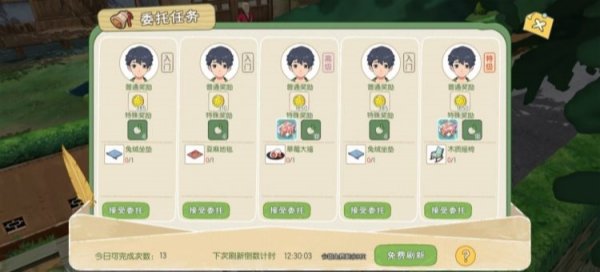 玩家每日可前往村长的家门口,查看今日的委托任务,完成后即可领取金币奖励。