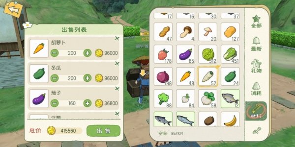 2、可以在背包和厨房查看食物价格,然后在出货箱的位置进行出售。