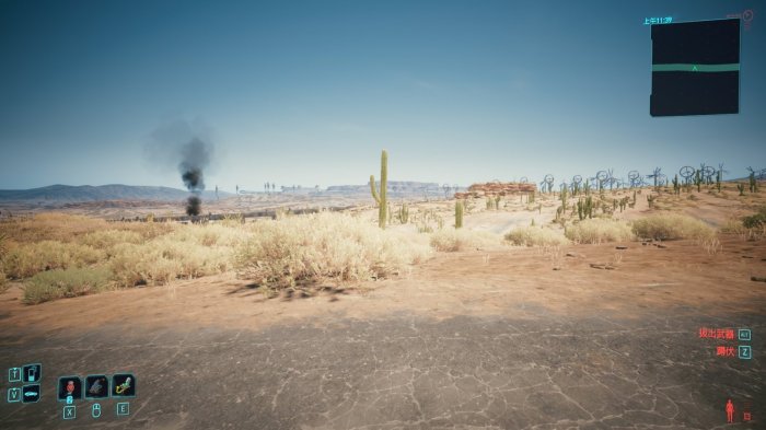 会在此处看见仙人掌和远处的黑烟,走到前方较高的仙人掌处(截图时间不在上午4点,不要见怪)