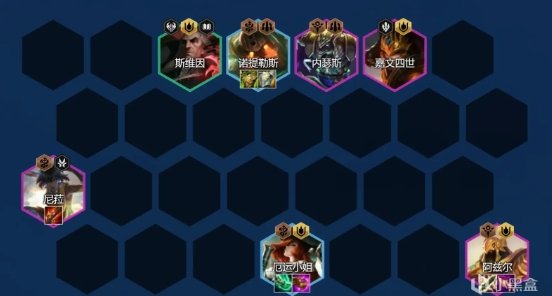 稳血后升8人口补出希尔科开出2法师+2祖安羁绊或3比尔+4主宰+2恕瑞玛+2征服羁绊(与之前主宰尼菈阵容相同,出装略有变化民间有诺提勒斯主坦,尼菈出装建议双火炮+巨杀)。