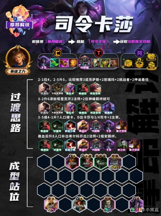3-5或4-1升7人口搜卡,d出3/4司令+2主宰,后排输出看来牌情况卡莎还是尼菈选择阵容。