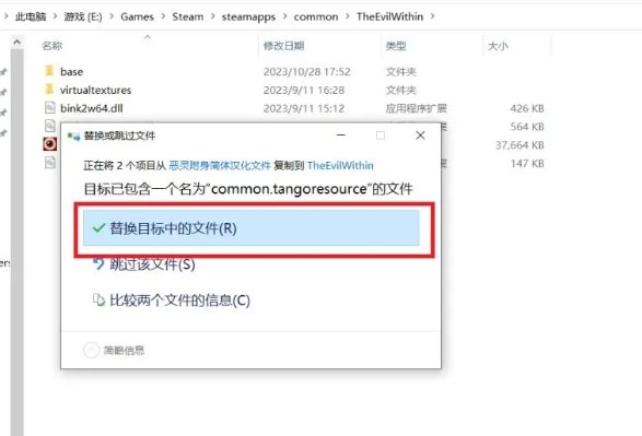 将base文件夹复制进游戏根目录,点击“替换目标中的文件”即可