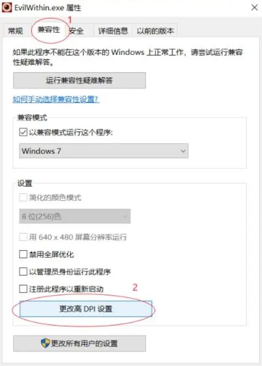 点击“兼容性”→点击”更改高dpi设置“(强烈建议同时勾选“以兼容模式运行这个程序”并把下面的兼容模式改为windows 7)
