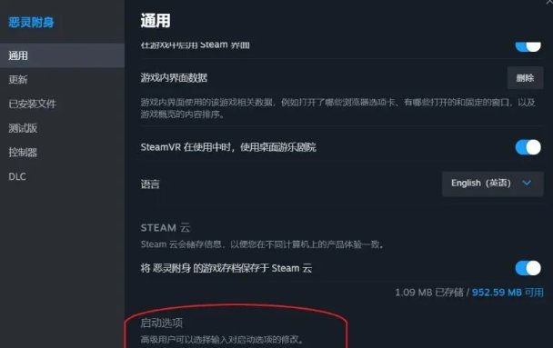 ”通用“中找到“启动选项”,复制输入代码+com_allowconsole 1